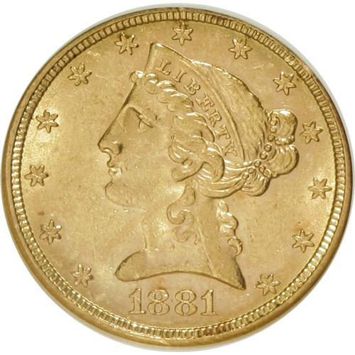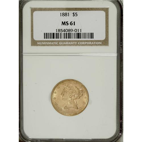 1881 $5 MS61 NGC. NGC Census: (2566/5838). PCGS Popula