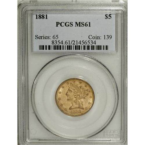 1881 $5 MS61 PCGS. PCGS Population (1064/2682). NG