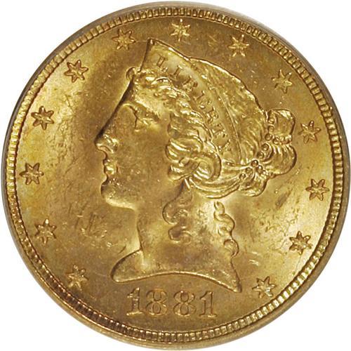 1881 $5 MS62 PCGS. PCGS Population (1637/1046). NGC Ce