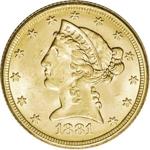 1881 $5 MS63 NGC. A lustrous and attentively struck Ha 1881[$5] MS63 NGC.