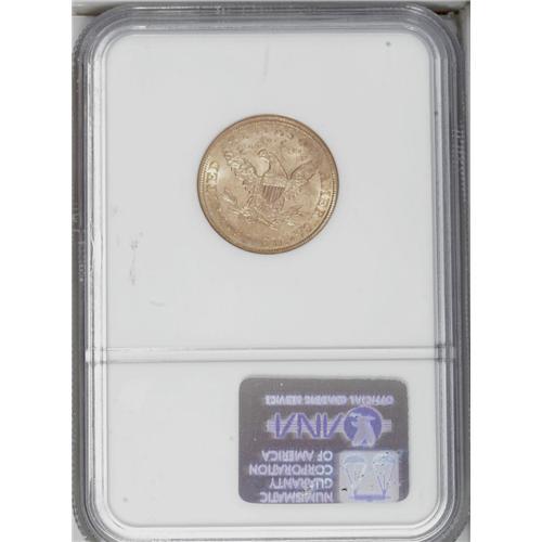 <B>1881/0<$5> MS63 NGC.</B></I> FS-301, formerly FS-005. The overdate is clear under magnification. A highly lustrous and nicely struck representative with lightly abraded yellow-gold surfaces.