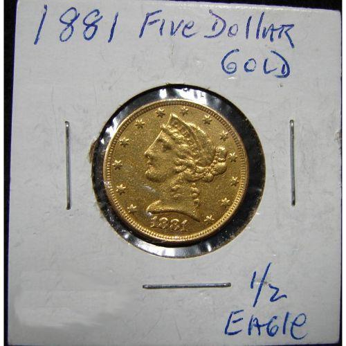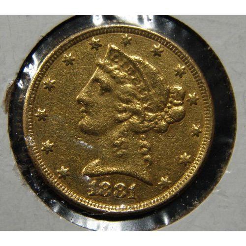1881 $5 U.S. LIBERTY GOLD COIN.