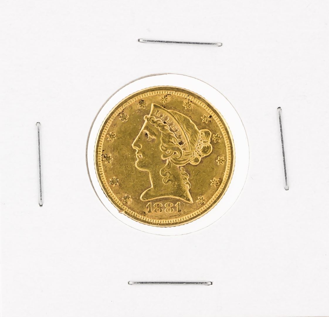 One 1881 $5 XF Liberty Head Half Eagle Gold Coin.