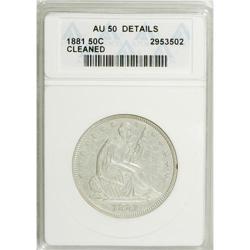1881 50C --Cleaned--ANACS. AU50 Details. NGC Census