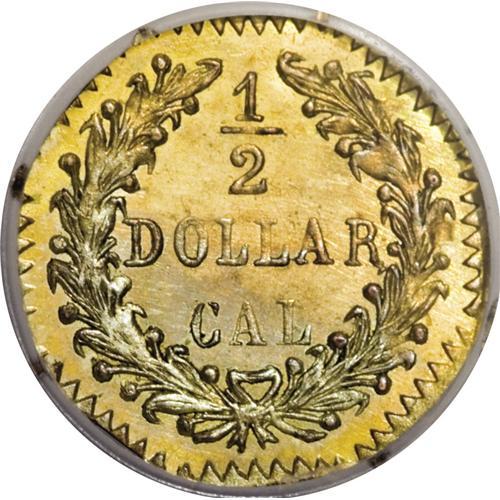 <B>1881 50C Indian Octagonal 50 Cents, BG-952B, Low R.6, MS63 Prooflike NGC.</B></I> Low R.6. Misattributed by NGC as the unique BG-952A. Both BG-952A and BG-952B have the same obverse, where the crack on the Indian's neck points at the first 1 in the date, but different reverses; BG-952B displays a bold CAL. Prooflike fields exhibit a nice contrast with the motifs, that are generally well defined. Orange-gold coloration with splashes of light green adorns both sides that are nicely preserved.<BR><I>From The Twin Hollows Collection, Part Two.</B></I><BR><BR><b>Shipping:</b> Coins & Currency (<a target="_blank" href="http://www.heritageauctions.com/common/shipping.php">view shipping information</a>)