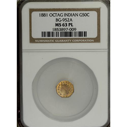 1881 50C Indian Octagonal 50 Cents, BG-952B MS63 Proof