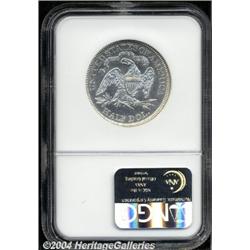 <B>1881<50C> MS65 Prooflike NGC.</B></I> A snowy-white Gem with excellent contrast between the glassy fields and frosty features. While prooflike examples of this briefly minted issue are not particularly unusual, just two pieces have been designated as such by NGC (4/04), this example being the finer of the two. <BR><BR><B>Important notice:</B> Heritage usually auctions material at the rate of 200-250 lots per hour. On some occasions eBay Live bid software or the Internet may not be able to keep up with the pace of the auction. We recommend placing a realistic absentee bid now as insurance to avoid disappointment. Occasionally the auctioneer may eliminate or reject an eBay Live bid, and the auctioneer may also reopen a lot after the close of the eBay live bidding (usually because we missed an audience bid), and may reject your bid even if it shows you as the winning bidder. By bidding via eBay Live, you agree that Heritage may award the lot to another bidder at its sole discretion under the circumstances described above or any other reasonable circumstances. Since eBay bids are not shown to us until we open the lot on the floor, we treat those bids just like floor bids. In most cases the floor responds before the eBay bid is presented to us, due to Internet lag time, so for consistency we have made it a policy that floor bids are always considered first over tie eBay live bids. Also please note that all Heritage lots purchased through eBay Live carry a 20% Buyer's Premium. Please make sure you read the Terms and Conditions before you bid.