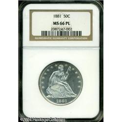 1881 50C MS66 Prooflike NGC. A snowy-white Gem wit <B>1881 50C MS66 Prooflike NGC.</B></I> A snowy-white Gem with excellent contrast between the glassy fields and frosty features. While prooflike examples of this briefly minted issue are not particularly unusual, the exceptionally smooth quality of this piece sets it apart from most others. Population: 13 in 66, 3 finer (11/04). <BR><BR><B>Important notice:</B> Heritage usually auctions material at the rate of 200-250 lots per hour. On some occasions eBay Live bid software or the Internet may not be able to keep up with the pace of the auction. We recommend placing a realistic absentee bid now as insurance to avoid disappointment. Occasionally the auctioneer may eliminate or reject an eBay Live bid, and the auctioneer may also reopen a lot after the close of the eBay live bidding (usually because we missed an audience bid), and may reject your bid even if it shows you as the winning bidder. By bidding via eBay Live, you agree that Heritage may award the lot to another bidder at its sole discretion under the circumstances described above or any other reasonable circumstances. Since eBay bids are not shown to us until we open the lot on the floor, we treat those bids just like floor bids. In most cases the floor responds before the eBay bid is presented to us, due to Internet lag time, so for consistency we have made it a policy that floor bids are always considered first over tie eBay live bids. Also please note that all Heritage lots purchased through eBay Live carry a 20% Buyer's Premium. Please make sure you read the Terms and Conditions before you bid. This lot is being auctioned in conjunction with a live floor auction by Heritage Galleries & Auctioneers. All final auction and invoice information will be supplied by Heritage Galleries & Auctioneers, and all other information should be considered preliminary. Lot:6105