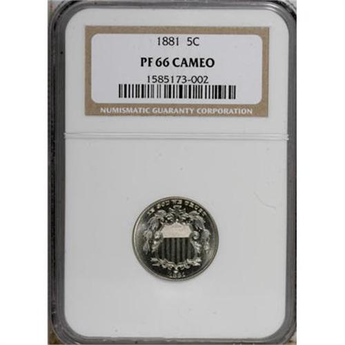 <B>1881 5C PR66 Cameo NGC.</B></I> NGC Census: (37/22). PCGS Population (41/10). (#83836)<BR><BR><b>Shipping:</b> Coins & Currency (<a target="_blank" href="http://www.heritageauctions.com/common/shipping.php">view shipping information</a>)