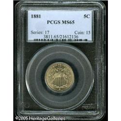 1881 5C MS65 PCGS. A lustrous, Gem example of this