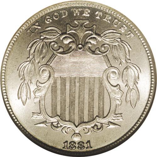 <B>1881<5C> MS66 NGC.</B></I> An impressive and important example with fully lustrous surfaces and light gray color with hints of gold toning. Each side is exceptionally well defined with the shield and leaves on the obverse showing full detail, as well as the stars on the reverse. Few finer business strike examples of this date have been certified. Census: 12 in 66, 3 finer (4/06).
