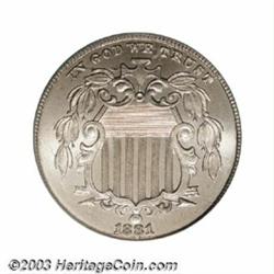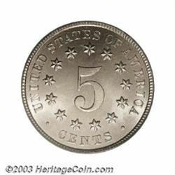 <TR><TD width="100%"><TABLE cellSpacing=1 cellPadding=3 width="100%" border=0><TBODY><TR><TD width="100%" bgColor=#79735c><FONT face=arial color=#ffffff size=3><B>Description</B> </FONT></TD></TR><TR><TD width="100%" bgColor=#ffffff><FONT face=arial size=2><B>1881 5C MS66 PCGS.</B></I> This is a sharply impressed Gem with flickers of golden-tan iridescence scattered over bright, satiny surfaces. Multiple die cracks (as struck) are seen on each side, and a faint die striation (also as struck) bisects the reverse, travelling between the upper left and lower right rims. The coin is nearly pristine, save for a pair of small handling marks that reside to the left of the large number 5, on the reverse. Among the finest certified survivors of this lower mintage issue. Population: 11 in 66, 5 finer (4/03). </FONT></TD></TR></TBODY></TABLE></TD></TR></TBODY></TABLE><BR><A name=PricesRealized></A><TABLE cellSpacing=0 cellPadding=0 width="100%" bgColor=#000000 border=0><TBODY><TR><TD width="100%"><TABLE cellSpacing=1 cellPadding=3 width="100%" border=0><TBODY><TR><TD width="100%" bgColor=#79735c><A name=PR><FONT face=arial color=#ffffff size=3><B>Previous Prices from Heritage Auctions</B> </FONT></A></TD></TR><TR><TD bgColor=#f6f6ed><TABLE cellSpacing=0 cellPadding=0 width="100%" border=1><TBODY><TR><TD align=middle width="33%"><B>Date</B></TD><TD align=middle width="33%"><B>Service</B></TD><TD align=middle width="33%"><B>Price</B></TD></TR><TR bgColor=whitesmoke><TD width="33%"><B>09/11/2001</B></TD><TD width="33%">PCGS</TD><TD width="33%">$2,250.00</TD></TR><TR bgColor=whitesmoke><TD width="33%"><B>09/28/2002</B></TD><TD width="33%">NGC</TD><TD width="33%">$1,495.00</TD></TR><TR bgColor=whitesmoke><TD width="33%"><B>10/06/2000</B></TD><TD width="33%">NGC</TD><TD width="33%">$1,552.50</TD></TR><TR bgColor=whitesmoke><TD width="33%"><B>11/01/1998</B></TD><TD width="33%">NGC</TD><TD width="33%">$1,840.00</TD></TR></TBODY></TABLE></TD></TR><TR><TD bgColor=#ffffff><FONT face=arial size=1 ?>PLEASE NOTE: All prices realized reflect the final hammer price PLUS the buyer's premium in auctions that charge a buyer's premium. Each item has a notation at the top of the listing indicating whether that lot included a buyer's premium. Example: A item that sells with a final hammer price of $100 and a 20% buyer's premium will display with a price realized of $120. All information listed is intended to be as accurate as possible, but errors are possible. Please use this guide carefully and inform us of any inaccuracies. </FONT></TD></TR></TBODY></TABLE></TD></TR></TBODY></TABLE><BR><TABLE cellSpacing=0 cellPadding=0 width="100%" bgColor=#000000 border=0><TBODY><TR><TD width="100%"><TABLE cellSpacing=1 cellPadding=3 width="100%" border=0><TBODY><TR><TD width="100%" bgColor=#79735c colSpan=6><FONT face=arial color=#ffffff size=3><B>Price Guide*</B> </FONT></TD></TR><TR bgColor=#f6f6ed><TD align=middle><B>Grade</B> </TD><TD align=middle><B>Coin World<BR>(Trends)</B> </TD><TD align=middle><B>Numismedia<BR>Retail</B> </TD><TD align=middle><B>Numismedia<BR>Wholesale</B> </TD><TD align=middle><B>Coin<BR>Universe</B> </TD><TD align=middle><B>Heritage<BR>Value Index</B> </TD></TR><TR bgColor=#ffffff><TD align=middle>65</TD><TD align=right>$1,200.00</TD><TD align=right>---</TD><TD align=right>$1,125.00</TD><TD align=right>$1,375.00</TD><TD align=right>$921.13</TD></TR><TR style="FONT-WEIGHT: bold" bgColor=#cccfdd><TD align=middle>66</TD><TD align=right>$2,000.00</TD><TD align=right>---</TD><TD align=right>$1,650.00</TD><TD align=right>$2,025.00</TD><TD align=right>$1,689.17</TD></TR><TR bgColor=#ffffff><TD align=middle>67</TD><TD align=right>---</TD><TD align=right>---</TD><TD align=right>$4,950.00</TD><TD align=right>$7,700.00</TD><TD align=right>$5,390.00</TD></TR><TR bgColor=#ffffff><TD colSpan=6><FONT size=1>*All information listed is intended to be as accurate as possible, but errors are possible. No item may be returned or refused based on this information which is provided as a service to our customers. You should contact each pricing source directly to determine the accuracy of this information. </FONT></TD></TR></TBODY></TABLE></TD></TR></TBODY></TABLE><BR><TABLE cellSpacing=0 cellPadding=0 width="100%" bgColor=#000000 border=0><TBODY><TR><TD width="100%"><TABLE cellSpacing=1 cellPadding=3 width="100%" border=0><TBODY><TR><TD width="100%" bgColor=#79735c><FONT face=arial color=#ffffff size=3><B>Population Guide</B> </FONT></TD></TR><TR bgColor=#ffffff><TD align=middle><!-- Begin Output of Population Grid--><TABLE cellSpacing=0 cellPadding=0 width="100%" border=0><TBODY><TR><TD vAlign=center><TABLE cellSpacing=0 width="100%" border=1 cellsadding="3"><TBODY><TR><TD vAlign=center><TABLE cellSpacing=0 cellPadding=3 width="100%" border=1><TBODY><TR><TD vAlign=center align=middle bgColor=#f0f1e8 colSpan=2 <CENTER><FONT face=Arial size=2><B>PCGS Pop </B></FONT><CENTER></CENTER></TD><TD vAlign=center align=middle bgColor=#f0f1e8 colSpan=2><CENTER><FONT face=Arial size=2><B>NGC Pop</B></CENTER></FONT></TD></TR><TR><TD vAlign=center><FONT face=Arial size=2>(66)</FONT> </TD><TD vAlign=center align=right><FONT face=Arial size=2>11</FONT> </TD><TD vAlign=center><FONT face=Arial size=2>(66)</FONT> </TD><TD vAlign=center align=right><FONT face=Arial size=2>12</FONT> </TD></TR><TR><TD vAlign=center><FONT face=Arial size=2>(>66)</FONT> </TD><TD vAlign=center align=right><FONT face=Arial size=2>5</FONT> </TD><TD vAlign=center><FONT face=Arial size=2>(>66)</FONT> </TD><TD vAlign=center align=right><FONT face=Arial size=2>4</FONT> </TD></TR></TBODY></TABLE></TD></TR></TBODY></TABLE></TD></TR></TBODY></TABLE><!-- End Output of Population Grid--></TD></TR></TBODY></TABLE></TD></TR></TBODY></TABLE><BR><TABLE cellSpacing=0 cellPadding=0 width="100%" bgColor=#000000 border=0><TBODY><TR> Important notice: We expect to be auctioning lots at the rate of 200-250 per hour. On occasion eBay live bid software cannot keep up with the pace of the a
