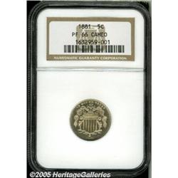 <B>1881 5C PR66 Cameo NGC.</B></I> A faintly toned and undisturbed example. The mirrors display impressive reflectivity, and the strike is unimprovable. Population: 24 in 66 Cameo, 16 finer (2/05).