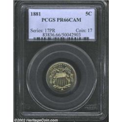 1881 5C PR66 Cameo PCGS. Powerfully impressed, and displaying seemingly complete detail on every des