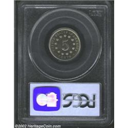 1881 5C PR66 Cameo PCGS. Powerfully impressed, and displaying seemingly complete detail on every design feature, this superlative proof Gem also exhibits nice olive tone, with underlying iridescent hues of bright yellow, sea-green, and pinkish-red. There are no bothersome hairlines or handling marks in evidence, but a pair of small planchet flaws, as struck, can be seen near the rim, with one on each side of the coin, and these should not be mistaken for small handling marks or surface blemishes. Important notice: We expect to be auctioning lots at the rate of 200-250 per hour. On occasion eBay live bid software cannot keep up with the pace of the auctions where 4-5 lots per minute can hammer down, so we recommend that you place a realistic absentee bid now as insurance to avoid disappointment. Also please note that all Heritage/CAA lots purchased through eBay Live carry a 20% Buyer's Premium. Please make sure you read the Terms and Conditions.