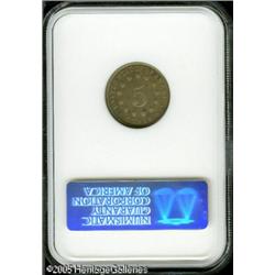 <B>1881 5C PR66 NGC.</B></I> Although 3,575 proofs were struck, this date usually commands a slight premium because of the low mintage of the business strikes of this year. A well struck and expertly preserved Gem, unmarked but showing a few small spots on the lower reverse. The second 8 in the date is recut. A light coating of milky olive color has accumulated, but this does not subdue the underlying brilliance. Lot:5858