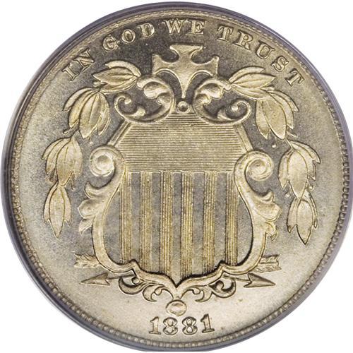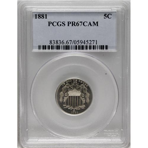 1881 5C PR67 Cameo PCGS. The 3,575 specimens coined fo