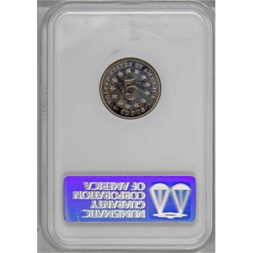 <B>1881 5C PR67 NGC.</B></I> Pretty rose-red, olive, and gold toning adorns this precisely struck and pleasing Superb Gem. A low mintage date. Housed in a prior generation holder. Census: 24 in 67, 1 finer (8/07).<BR><BR><B>Coin Engraver:</B> James B. Longacre<BR><BR><b>Shipping:</b> Coins & Currency (<a target="_blank" href="http://www.heritageauctions.com/common/shipping.php">view shipping information</a>)