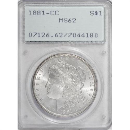 <B>1881-CC $1 MS62 PCGS.</B></I> . PCGS Population (887/14387). NGC Census: (392/6216). Mintage: 296,000. Numismedia Wsl. Price for NGC/PCGS coin in MS62: $433. (#7126)<BR><BR><B>Coin Engraver:</B> George T. Morgan<BR><BR><b>Shipping:</b> Coins & Currency (<a target="_blank" href="http://www.heritageauctions.com/common/shipping.php">view shipping information</a>)