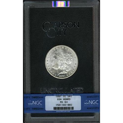 <B>1881-CC $1 MS63 NGC.</B></I> NGC Census: (1235/4800). PCGS Population (3185/10995). Mintage: 296,000. Numismedia Wsl. Price for NGC/PCGS coin in MS63: $450. (#7126)<BR><BR><B>Coin Engraver:</B> George T. Morgan<BR><BR><b>Shipping:</b> Coins & Currency (<a target="_blank" href="http://www.heritageauctions.com/common/shipping.php">view shipping information</a>)