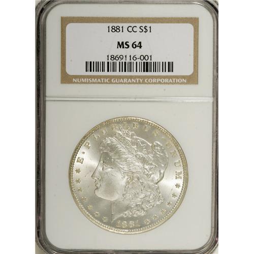 1881-CC $1 MS64 NGC. NGC Census: (2423/2252). PCGS Pop