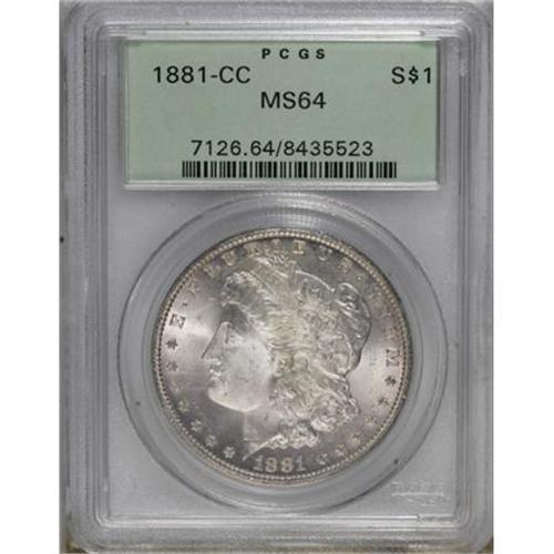 <B>1881-CC $1 MS64 PCGS.</B></I> PCGS Population (5882/5329). NGC Census: (2564/2389). Mintage: 296,000. Numismedia Wsl. Price for NGC/PCGS coin in MS64: $480. (#7126)<BR><BR><B>Coin Engraver:</B> George T. Morgan<BR><BR><b>Shipping:</b> Coins & Currency (<a target="_blank" href="http://www.heritageauctions.com/common/shipping.php">view shipping information</a>)