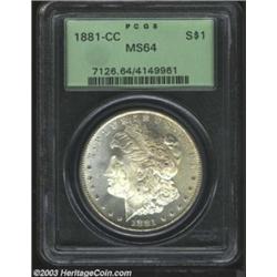 <TABLE cellSpacing=0 cellPadding=0 width="100%" bgColor=#000000 border=0><TBODY><TR><TD width="100%"><TABLE cellSpacing=1 cellPadding=3 width="100%" border=0><TBODY><TR><TD width="100%" bgColor=#79735c><FONT face=arial color=#ffffff size=3><B>Description</B> </FONT></TD></TR><TR><TD width="100%" bgColor=#ffffff><FONT face=arial size=2><B>1881-CC $1 MS64 PCGS.</B></I> A well struck and seemingly prooflike near-Gem that has dusky apricot color and gorgeously preserved fields. A few very faint grazes on the cheek confirm the conservative grade. </FONT></TD></TR></TBODY></TABLE></TD></TR></TBODY></TABLE><BR><A name=PricesRealized></A><TABLE cellSpacing=0 cellPadding=0 width="100%" bgColor=#000000 border=0><TBODY><TR><TD width="100%"><TABLE cellSpacing=1 cellPadding=3 width="100%" border=0><TBODY><TR><TD width="100%" bgColor=#79735c><A name=PR><FONT face=arial color=#ffffff size=3><B>Previous Prices from Heritage Auctions</B> </FONT></A></TD></TR><TR><TD bgColor=#f6f6ed><TABLE cellSpacing=0 cellPadding=0 width="100%" border=1><TBODY><TR><TD align=middle width="33%"><B>Date</B></TD><TD align=middle width="33%"><B>Service</B></TD><TD align=middle width="33%"><B>Price</B></TD></TR><TR bgColor=whitesmoke><TD width="33%"><B>09/30/2002</B></TD><TD width="33%">ANACS</TD><TD width="33%">$299.00</TD></TR><TR bgColor=whitesmoke><TD width="33%"><B>09/30/2002</B></TD><TD width="33%">ANACS</TD><TD width="33%">$299.00</TD></TR><TR bgColor=whitesmoke><TD width="33%"><B>09/30/2002</B></TD><TD width="33%">ANACS</TD><TD width="33%">$333.50</TD></TR><TR bgColor=whitesmoke><TD width="33%"><B>09/30/2002</B></TD><TD width="33%">ANACS</TD><TD width="33%">$333.50</TD></TR><TR bgColor=whitesmoke><TD width="33%"><B>09/30/2002</B></TD><TD width="33%">ANACS</TD><TD width="33%">$281.75</TD></TR><TR bgColor=whitesmoke><TD width="33%"><B>09/30/2002</B></TD><TD width="33%">ANACS</TD><TD width="33%">$281.75</TD></TR><TR bgColor=whitesmoke><TD width="33%"><B>09/30/2002</B></TD><TD width="33%">ANACS</TD><TD width="33%">$276.00</TD></TR><TR bgColor=whitesmoke><TD width="33%"><B>09/30/2002</B></TD><TD width="33%">ANACS</TD><TD width="33%">$276.00</TD></TR><TR bgColor=whitesmoke><TD width="33%"><B>06/10/2002</B></TD><TD width="33%">ANACS</TD><TD width="33%">$258.75</TD></TR><TR bgColor=whitesmoke><TD width="33%"><B>06/10/2002</B></TD><TD width="33%">ANACS</TD><TD width="33%">$258.75</TD></TR><TR bgColor=whitesmoke><TD width="33%"><B>03/20/2001</B></TD><TD width="33%">ANACS</TD><TD width="33%">$225.00</TD></TR><TR bgColor=whitesmoke><TD width="33%"><B>03/20/2001</B></TD><TD width="33%">ANACS</TD><TD width="33%">$225.00</TD></TR><TR bgColor=whitesmoke><TD width="33%"><B>11/12/1993</B></TD><TD width="33%">ANACS</TD><TD width="33%">$165.00</TD></TR><TR bgColor=whitesmoke><TD width="33%"><B>11/12/1993</B></TD><TD width="33%">ANACS</TD><TD width="33%">$165.00</TD></TR><TR bgColor=whitesmoke><TD width="33%"><B>01/13/2002</B></TD><TD width="33%">ANACS</TD><TD width="33%">$264.50</TD></TR><TR bgColor=whitesmoke><TD width="33%"><B>01/13/2002</B></TD><TD width="33%">ANACS</TD><TD width="33%">$264.50</TD></TR><TR bgColor=whitesmoke><TD width="33%"><B>11/17/2001</B></TD><TD width="33%">ANACS</TD><TD width="33%">$241.50</TD></TR><TR bgColor=whitesmoke><TD width="33%"><B>11/17/2001</B></TD><TD width="33%">ANACS</TD><TD width="33%">$241.50</TD></TR><TR bgColor=whitesmoke><TD width="33%"><B>10/07/2001</B></TD><TD width="33%">ANACS</TD><TD width="33%">$247.25</TD></TR><TR bgColor=whitesmoke><TD width="33%"><B>10/07/2001</B></TD><TD width="33%">ANACS</TD><TD width="33%">$247.25</TD></TR><TR bgColor=whitesmoke><TD width="33%"><B>06/26/2001</B></TD><TD width="33%">ANACS</TD><TD width="33%">$250.00</TD></TR><TR bgColor=whitesmoke><TD width="33%"><B>06/26/2001</B></TD><TD width="33%">ANACS</TD><TD width="33%">$250.00</TD></TR><TR bgColor=whitesmoke><TD width="33%"><B>03/04/1994</B></TD><TD width="33%">ANACS</TD><TD width="33%">$165.00</TD></TR><TR bgColor=whitesmoke><TD width="33%"><B>03/04/1994</B></TD><TD width="33%">ANACS</TD><TD width="33%">$165.00</TD></TR><TR bgColor=whitesmoke><TD width="33%"><B>05/19/1995</B></TD><TD width="33%">ANACS</TD><TD width="33%">$154.00</TD></TR><TR bgColor=whitesmoke><TD width="33%"><B>05/19/1995</B></TD><TD width="33%">ANACS</TD><TD width="33%">$154.00</TD></TR><TR bgColor=whitesmoke><TD width="33%"><B>12/03/1993</B></TD><TD width="33%">ANACS</TD><TD width="33%">$176.00</TD></TR><TR bgColor=whitesmoke><TD width="33%"><B>12/03/1993</B></TD><TD width="33%">ANACS</TD><TD width="33%">$176.00</TD></TR><TR bgColor=whitesmoke><TD width="33%"><B>07/11/2000</B></TD><TD width="33%">NGC</TD><TD width="33%">$230.00</TD></TR><TR bgColor=whitesmoke><TD width="33%"><B>07/11/2000</B></TD><TD width="33%">NGC</TD><TD width="33%">$230.00</TD></TR><TR bgColor=whitesmoke><TD width="33%"><B>06/13/2000</B></TD><TD width="33%">NGC</TD><TD width="33%">$230.00</TD></TR><TR bgColor=whitesmoke><TD width="33%"><B>06/13/2000</B></TD><TD width="33%">NGC</TD><TD width="33%">$230.00</TD></TR><TR bgColor=whitesmoke><TD width="33%"><B>06/06/2000</B></TD><TD width="33%">NGC</TD><TD width="33%">$230.00</TD></TR><TR bgColor=whitesmoke><TD width="33%"><B>06/06/2000</B></TD><TD width="33%">NGC</TD><TD width="33%">$230.00</TD></TR><TR bgColor=whitesmoke><TD width="33%"><B>02/01/2000</B></TD><TD width="33%">NGC</TD><TD width="33%">$210.00</TD></TR><TR bgColor=whitesmoke><TD width="33%"><B>02/01/2000</B></TD><TD width="33%">NGC</TD><TD width="33%">$210.00</TD></TR><TR bgColor=whitesmoke><TD width="33%"><B>11/25/2002</B></TD><TD width="33%">ANACS</TD><TD width="33%">$281.75</TD></TR><TR bgColor=whitesmoke><TD width="33%"><B>11/25/2002</B></TD><TD width="33%">ANACS</TD><TD width="33%">$281.75</TD></TR><TR bgColor=whitesmoke><TD width="33%"><B>01/14/2003</B></TD><TD width="33%">PCGS</TD><TD width="33%">$356.50</TD></TR><TR bgColor=whitesmoke><TD width="33%"><B>01/14/2003</B></TD><TD width="33%">PCGS</TD><TD width="33%">$356.50</TD></TR><TR bgColor=whitesmoke><TD