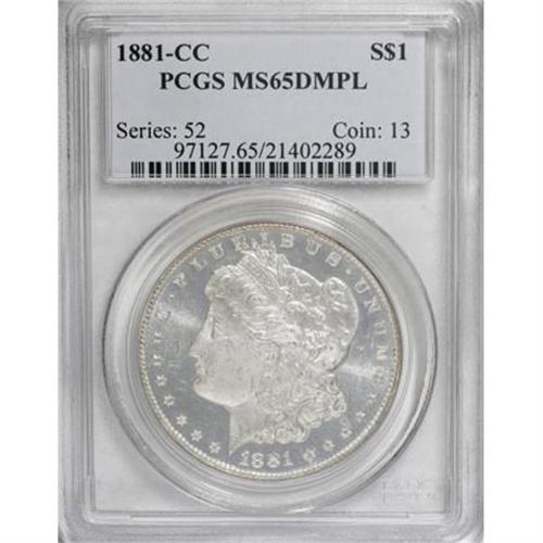<B>1881-CC $1 MS65 Deep Mirror Prooflike PCGS.</B></I> VAM-2 with recutting or die fill within the upper loop of the second 8, reminiscent of the 1880-CC 8 Over Low 7 VAM-6. This carefully preserved Gem has light honey toning and imposing field reflectivity. The devices are frosty, and the eye appeal is undeniable.<BR><I>From the Diamond Head Registry Set of Prooflike Dollars.</B></I><BR><BR><b>Shipping:</b> Coins & Currency (<a target="_blank" href="http://www.heritageauctions.com/common/shipping.php">view shipping information</a>)