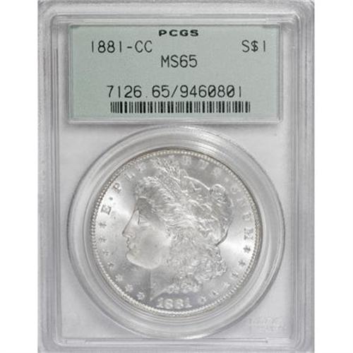 <B>1881-CC $1 MS65 PCGS.</B></I> Light almond-gold toning graces this lustrous and boldly struck low mintage Carson City dollar. Only infrequent obverse luster grazes deny a higher grade. Housed in an old green label holder.<BR><BR><b>Shipping:</b> Coins & Currency (<a target="_blank" href="http://www.heritageauctions.com/common/shipping.php">view shipping information</a>)