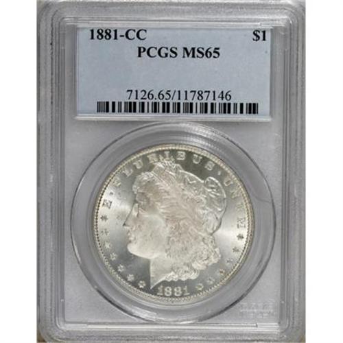 <B>1881-CC $1 MS65 PCGS.</B></I> PCGS Population (3708/1445). NGC Census: (1623/687). Mintage: 296,000. Numismedia Wsl. Price for NGC/PCGS coin in MS65: $740. (#7126)<BR><BR><B>Coin Engraver:</B> George T. Morgan<BR><BR><b>Shipping:</b> Coins & Currency (<a target="_blank" href="http://www.heritageauctions.com/common/shipping.php">view shipping information</a>)