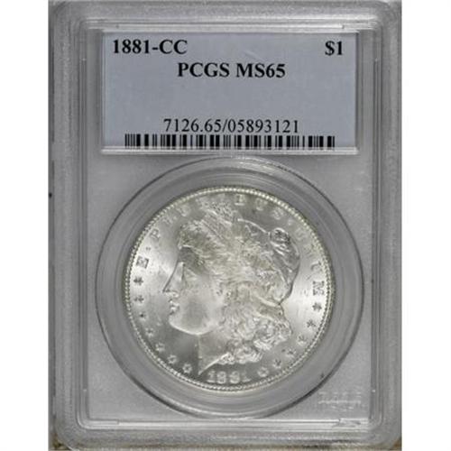<B>1881-CC $1 MS65 PCGS.</B></I> . PCGS Population (3800/1523). NGC Census: (1685/707). Mintage: 296,000. Numismedia Wsl. Price for NGC/PCGS coin in MS65: $735. (#7126)<BR><BR><B>Coin Engraver:</B> George T. Morgan<BR><BR><b>Shipping:</b> Coins & Currency (<a target="_blank" href="http://www.heritageauctions.com/common/shipping.php">view shipping information</a>)