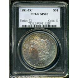 <TABLE cellSpacing=0 cellPadding=0 width="100%" bgColor=#000000 border=0><TBODY><TR><TD width="100%"><TABLE cellSpacing=1 cellPadding=3 width="100%" border=0><TBODY><TR><TD width="100%" bgColor=#79735c><FONT face=arial color=#ffffff size=3><B>Description</B> </FONT></TD></TR><TR><TD width="100%" bgColor=#ffffff><FONT face=arial size=2><B>1881-CC $1 MS65 PCGS.</B></I> The obverse is covered by lovely dappled violet-orange and sea-green patina. The reverse is essentially untoned, and shows a pair of moderate marks on the eagle's breast. </FONT></TD></TR></TBODY></TABLE></TD></TR></TBODY></TABLE><BR><A name=PricesRealized></A><TABLE cellSpacing=0 cellPadding=0 width="100%" bgColor=#000000 border=0><TBODY><TR><TD width="100%"><TABLE cellSpacing=1 cellPadding=3 width="100%" border=0><TBODY><TR><TD width="100%" bgColor=#79735c><A name=PR><FONT face=arial color=#ffffff size=3><B>Previous Prices from Heritage Auctions</B> </FONT></A></TD></TR><TR><TD bgColor=#f6f6ed><TABLE cellSpacing=0 cellPadding=0 width="100%" border=1><TBODY><TR><TD align=middle width="33%"><B>Date</B></TD><TD align=middle width="33%"><B>Service</B></TD><TD align=middle width="33%"><B>Price</B></TD></TR><TR bgColor=whitesmoke><TD width="33%"><B>11/25/2002</B></TD><TD width="33%">ANACS</TD><TD width="33%">$506.00</TD></TR><TR bgColor=whitesmoke><TD width="33%"><B>11/25/2002</B></TD><TD width="33%">ANACS</TD><TD width="33%">$506.00</TD></TR><TR bgColor=whitesmoke><TD width="33%"><B>11/25/2002</B></TD><TD width="33%">ANACS</TD><TD width="33%">$506.00</TD></TR><TR bgColor=whitesmoke><TD width="33%"><B>11/25/2002</B></TD><TD width="33%">ANACS</TD><TD width="33%">$437.00</TD></TR><TR bgColor=whitesmoke><TD width="33%"><B>11/25/2002</B></TD><TD width="33%">ANACS</TD><TD width="33%">$437.00</TD></TR><TR bgColor=whitesmoke><TD width="33%"><B>11/23/2002</B></TD><TD width="33%">ANACS</TD><TD width="33%">$414.00</TD></TR><TR bgColor=whitesmoke><TD width="33%"><B>11/23/2002</B></TD><TD width="33%">ANACS</TD><TD width="33%">$414.00</TD></TR><TR bgColor=whitesmoke><TD width="33%"><B>11/23/2002</B></TD><TD width="33%">ANACS</TD><TD width="33%">$414.00</TD></TR><TR bgColor=whitesmoke><TD width="33%"><B>10/04/2000</B></TD><TD width="33%">ANACS</TD><TD width="33%">$373.75</TD></TR><TR bgColor=whitesmoke><TD width="33%"><B>10/04/2000</B></TD><TD width="33%">ANACS</TD><TD width="33%">$373.75</TD></TR><TR bgColor=whitesmoke><TD width="33%"><B>10/04/2000</B></TD><TD width="33%">ANACS</TD><TD width="33%">$402.50</TD></TR><TR bgColor=whitesmoke><TD width="33%"><B>10/04/2000</B></TD><TD width="33%">ANACS</TD><TD width="33%">$402.50</TD></TR><TR bgColor=whitesmoke><TD width="33%"><B>10/04/2000</B></TD><TD width="33%">ANACS</TD><TD width="33%">$402.50</TD></TR><TR bgColor=whitesmoke><TD width="33%"><B>06/03/1998</B></TD><TD width="33%">ANACS</TD><TD width="33%">$352.00</TD></TR><TR bgColor=whitesmoke><TD width="33%"><B>06/03/1998</B></TD><TD width="33%">ANACS</TD><TD width="33%">$352.00</TD></TR><TR bgColor=whitesmoke><TD width="33%"><B>01/05/2001</B></TD><TD width="33%">ANACS</TD><TD width="33%">$373.75</TD></TR><TR bgColor=whitesmoke><TD width="33%"><B>01/05/2001</B></TD><TD width="33%">ANACS</TD><TD width="33%">$373.75</TD></TR><TR bgColor=whitesmoke><TD width="33%"><B>01/05/2001</B></TD><TD width="33%">ANACS</TD><TD width="33%">$373.75</TD></TR><TR bgColor=whitesmoke><TD width="33%"><B>06/06/1997</B></TD><TD width="33%">ANACS</TD><TD width="33%">$235.75</TD></TR><TR bgColor=whitesmoke><TD width="33%"><B>06/06/1997</B></TD><TD width="33%">ANACS</TD><TD width="33%">$235.75</TD></TR><TR bgColor=whitesmoke><TD width="33%"><B>11/07/1998</B></TD><TD width="33%">ANACS</TD><TD width="33%">$330.00</TD></TR><TR bgColor=whitesmoke><TD width="33%"><B>11/07/1998</B></TD><TD width="33%">ANACS</TD><TD width="33%">$330.00</TD></TR><TR bgColor=whitesmoke><TD width="33%"><B>11/07/1998</B></TD><TD width="33%">ANACS</TD><TD width="33%">$330.00</TD></TR><TR bgColor=whitesmoke><TD width="33%"><B>01/06/1993</B></TD><TD width="33%">ANACS</TD><TD width="33%">$198.00</TD></TR><TR bgColor=whitesmoke><TD width="33%"><B>01/06/1993</B></TD><TD width="33%">ANACS</TD><TD width="33%">$198.00</TD></TR><TR bgColor=whitesmoke><TD width="33%"><B>02/20/2001</B></TD><TD width="33%">ANACS</TD><TD width="33%">$340.00</TD></TR><TR bgColor=whitesmoke><TD width="33%"><B>02/20/2001</B></TD><TD width="33%">ANACS</TD><TD width="33%">$340.00</TD></TR><TR bgColor=whitesmoke><TD width="33%"><B>02/20/2001</B></TD><TD width="33%">ANACS</TD><TD width="33%">$340.00</TD></TR><TR bgColor=whitesmoke><TD width="33%"><B>10/04/2000</B></TD><TD width="33%">ANACS</TD><TD width="33%">$373.75</TD></TR><TR bgColor=whitesmoke><TD width="33%"><B>10/04/2000</B></TD><TD width="33%">ANACS</TD><TD width="33%">$373.75</TD></TR><TR bgColor=whitesmoke><TD width="33%"><B>02/24/2001</B></TD><TD width="33%">ANACS</TD><TD width="33%">$356.50</TD></TR><TR bgColor=whitesmoke><TD width="33%"><B>02/24/2001</B></TD><TD width="33%">ANACS</TD><TD width="33%">$356.50</TD></TR><TR bgColor=whitesmoke><TD width="33%"><B>02/24/2001</B></TD><TD width="33%">ANACS</TD><TD width="33%">$356.50</TD></TR><TR bgColor=whitesmoke><TD width="33%"><B>11/07/1998</B></TD><TD width="33%">ANACS</TD><TD width="33%">$357.50</TD></TR><TR bgColor=whitesmoke><TD width="33%"><B>11/07/1998</B></TD><TD width="33%">ANACS</TD><TD width="33%">$357.50</TD></TR><TR bgColor=whitesmoke><TD width="33%"><B>10/24/2000</B></TD><TD width="33%">ANACS</TD><TD width="33%">$360.00</TD></TR><TR bgColor=whitesmoke><TD width="33%"><B>10/24/2000</B></TD><TD width="33%">ANACS</TD><TD width="33%">$360.00</TD></TR><TR bgColor=whitesmoke><TD width="33%"><B>10/24/2000</B></TD><TD width="33%">ANACS</TD><TD width="33%">$360.00</TD></TR><TR bgColor=whitesmoke><TD width="33%"><B>08/16/1995</B></TD><TD width="33%">ANACS</TD><TD width="33%">$220.00</TD></TR><TR bgColor=whitesmoke><TD width="33%"><B>08/16/1995</B></TD><TD width="33%">ANACS</TD><TD width="33%">$220.00</TD></TR><TR bgColor=whi