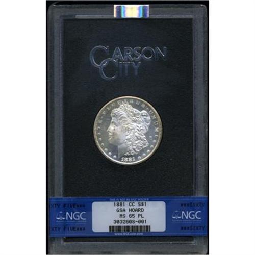 <B>1881-CC $1 MS65 Prooflike NGC.</B></I> VAM-2. The die fill within the upper loop of the second 8 in the date is reminiscent of the "8 Over Low 7" 1880-CC variety. This well struck and low mintage Carson City dollar features beautiful powder-blue and autumn-brown toning across the reverse border.<BR><BR><B>Coin Engraver:</B> George T. Morgan<BR><BR><b>Shipping:</b> Coins & Currency (<a target="_blank" href="http://www.heritageauctions.com/common/shipping.php">view shipping information</a>)