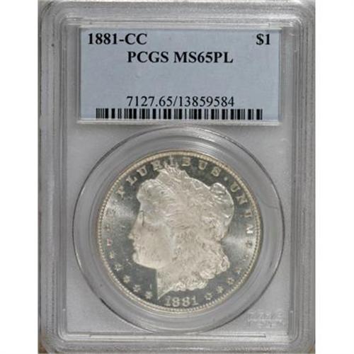 <B>1881-CC $1 MS65 Prooflike PCGS.</B></I> The frost on the sharply struck devices is thick, and the reflectivity of the mirrors is deep. A few wisps of haze are noted over the flashy fields of this outstanding Carson City Gem.<BR><BR><B>Coin Engraver:</B> George T. Morgan<BR><BR><b>Shipping:</b> Coins & Currency (<a target="_blank" href="http://www.heritageauctions.com/common/shipping.php">view shipping information</a>)