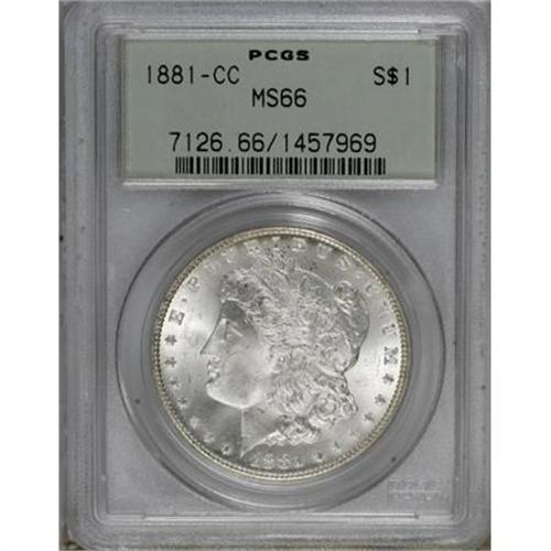 <B>1881-CC $1 MS66 PCGS.</B></I> An attractive example of this low-mintage, high-availability Carson City issue, richly frosted with light silver-gray haze over strongly lustrous surfaces. Carefully preserved and delightful.<BR><BR><B>Coin Engraver:</B> George T. Morgan<BR><BR><b>Shipping:</b> Coins & Currency (<a target="_blank" href="http://www.heritageauctions.com/common/shipping.php">view shipping information</a>)