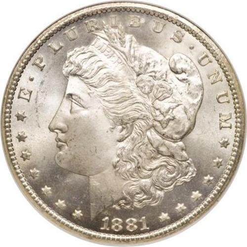 <B>1881-CC $1 MS67 NGC.</B></I> Essentially brilliant with a thick layer of ebullient mint frost covering both sides, this is a beautiful ice-white Superb Gem. The design features are sharply struck, and surface disturbances are absolutely minimal. According to noted expert Wayne Miller: "On the whole, the 1881-CC is probably the highest quality Morgan dollar struck at the Carson City mint. This is due to the low mintage, which allowed more time per coin for production, and to the fact that the Carson City mint struck fewer coins per die pair than any of the mints." In fact, a mere 296,000 pieces were produced. NGC has certified only three pieces finer (12/07).<BR><BR><B>Coin Engraver:</B> George T. Morgan<BR><BR><b>Shipping:</b> Coins & Currency (<a target="_blank" href="http://www.heritageauctions.com/common/shipping.php">view shipping information</a>)