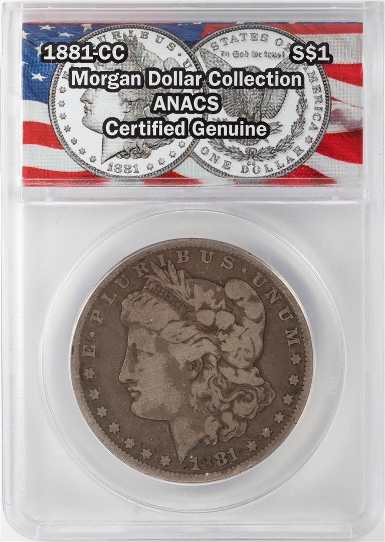 One 1881-CC $1 Morgan Silver Dollar Coin ANACS Certified Genuine. ANACS Certified.