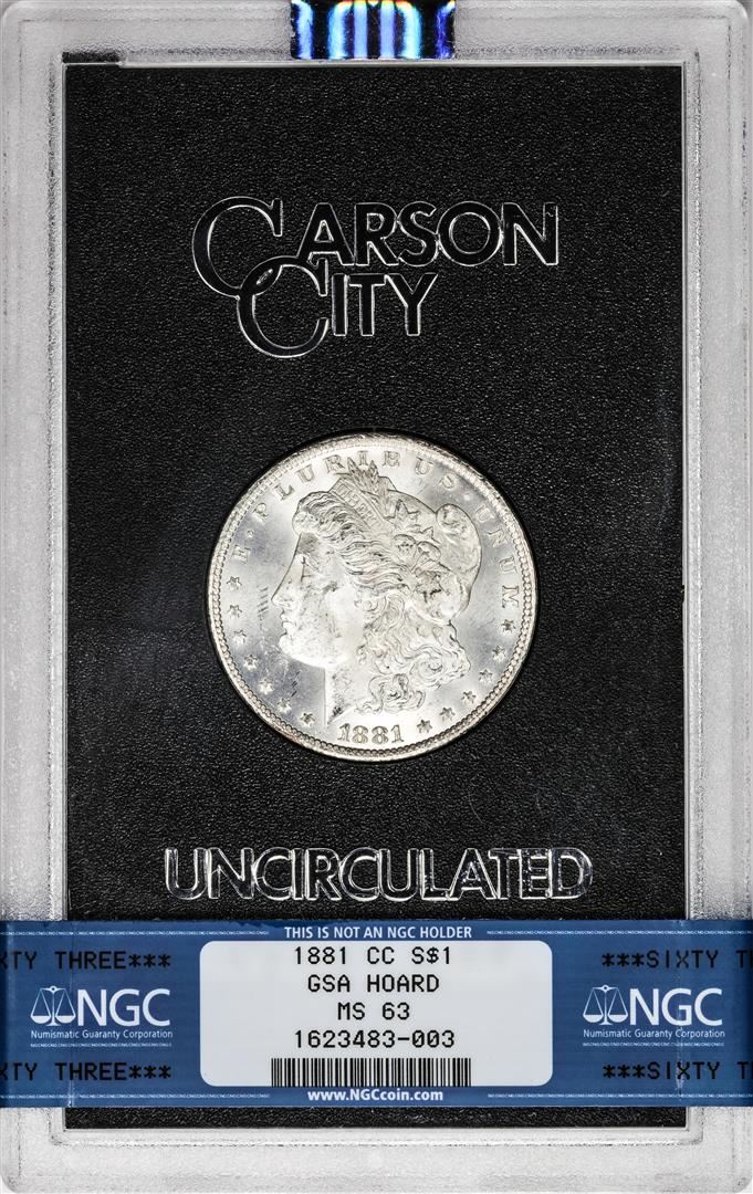 1881-CC $1 Morgan Silver Dollar Coin GSA Hoard Uncirculated NGC MS63