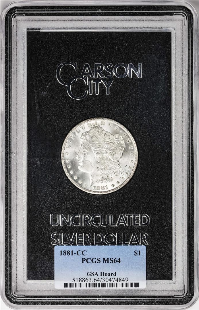 One 1881-CC $1 Morgan Silver Dollar Coin GSA Hoard Uncirculated PCGS MS64. PCGS Graded.