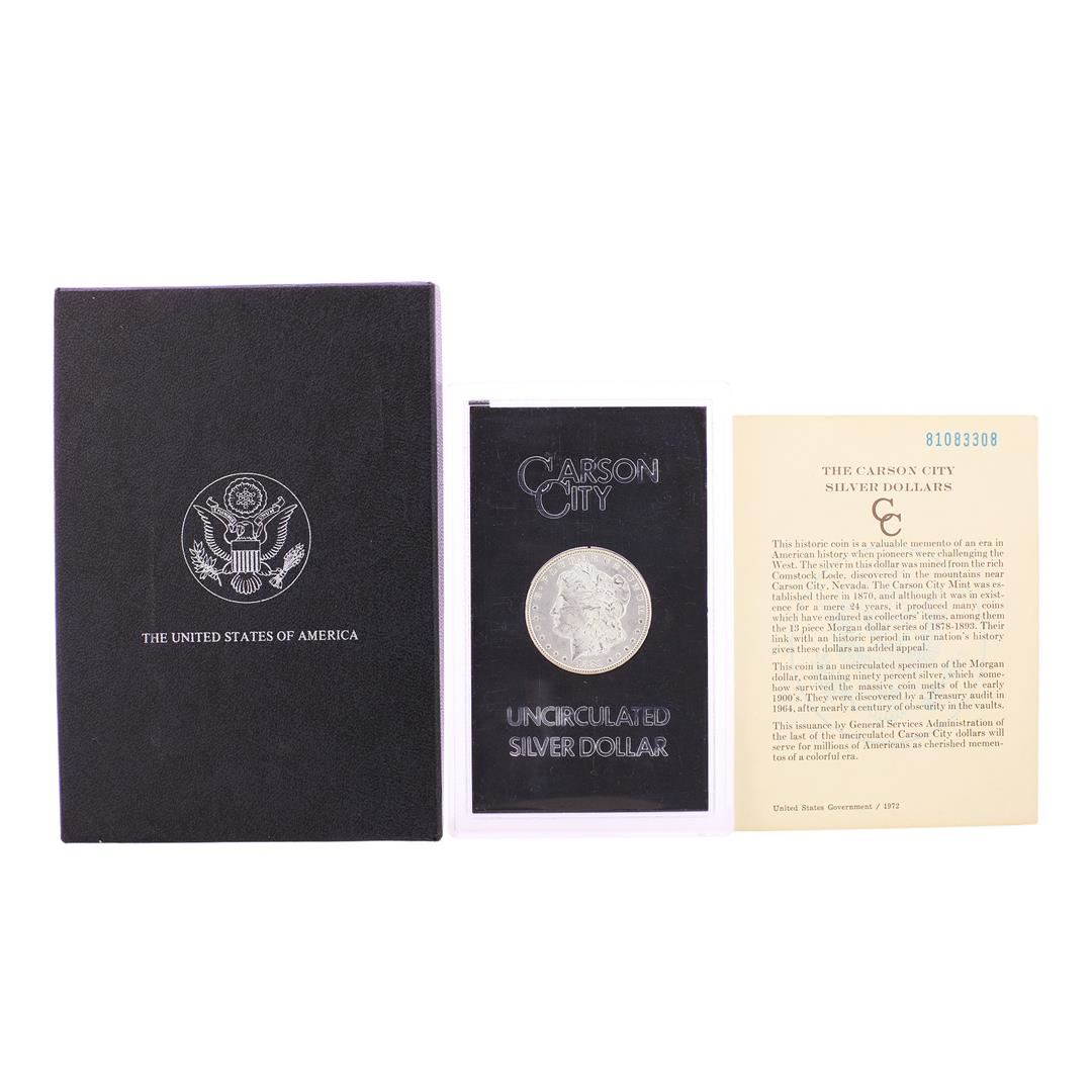 One 1881-CC $1 Morgan Silver Dollar Coin GSA Hoard Uncirculated w/Box & COA.