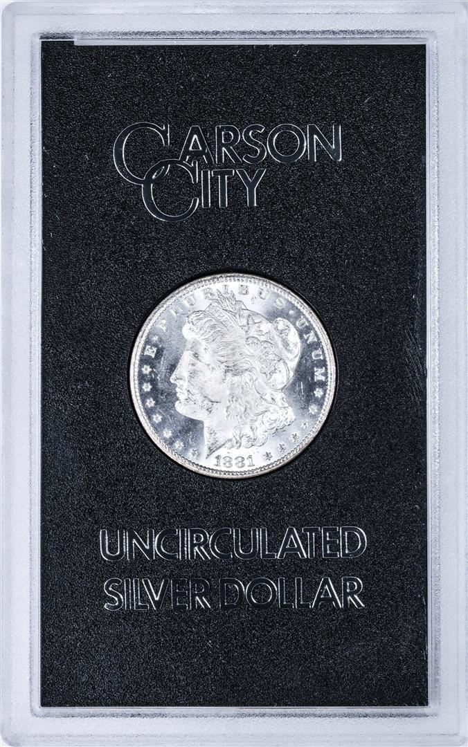 One 1881-CC $1 Morgan Silver Dollar Coin GSA Hoard Uncirculated w/Box & COA.