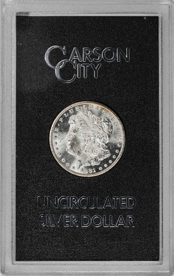One 1881-CC $1 Morgan Silver Dollar Coin GSA Hoard Uncirculated w/Box & COA.