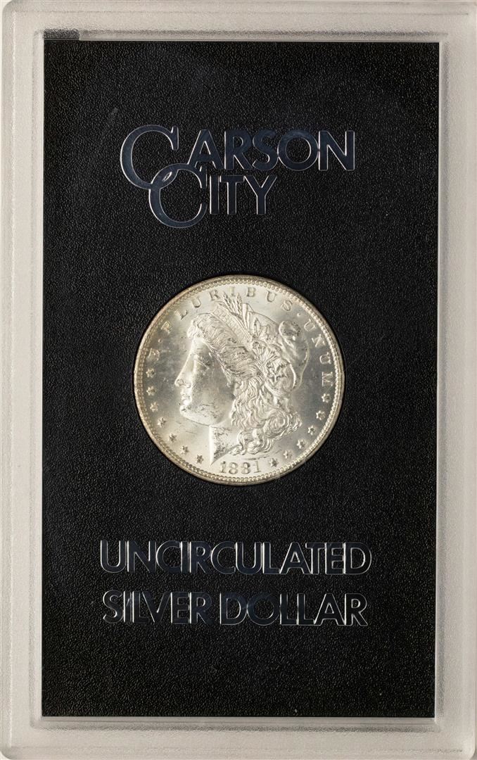 One 1881-CC $1 Morgan Silver Dollar Coin GSA Hoard Uncirculated.