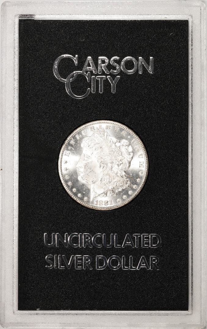 One 1881-CC $1 Morgan Silver Dollar Coin GSA Hoard Uncirculated.