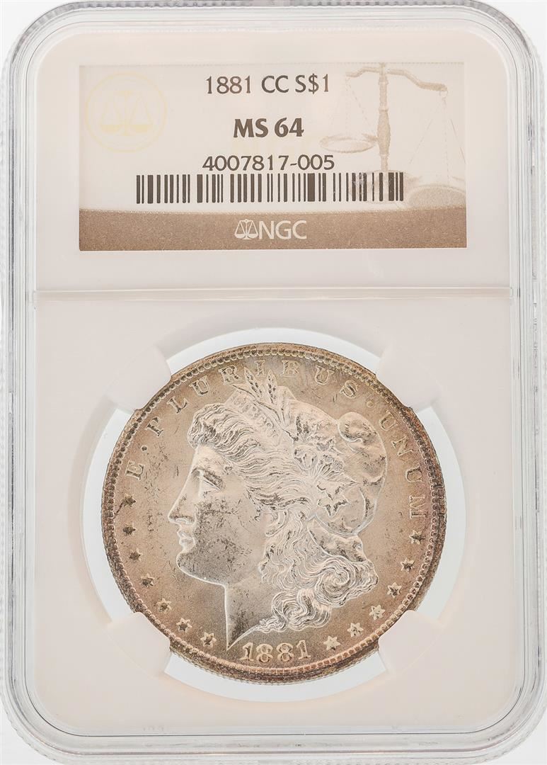 One 1881-CC $1 Morgan Silver Dollar Coin NGC MS64. NGC Certified.
