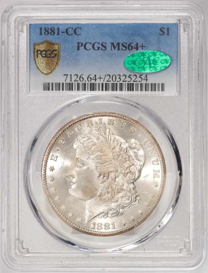 One 1881-CC $1 Morgan Silver Dollar Coin PCGS MS64+ CAC. PCGS Graded.