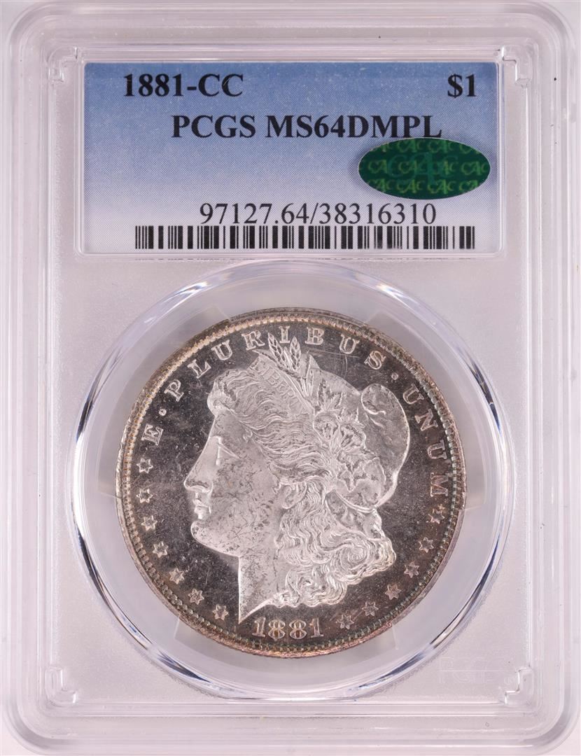 One 1881-CC $1 Morgan Silver Dollar Coin PCGS MS64DMPL CAC. PCGS Graded.
