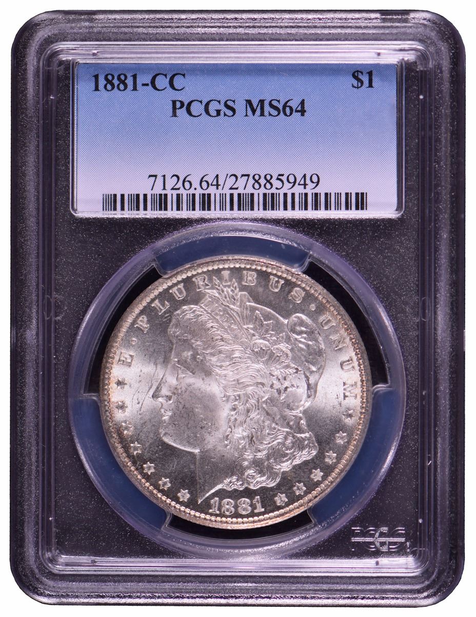 One 1881-CC $1 Morgan Silver Dollar Coin PCGS MS64.