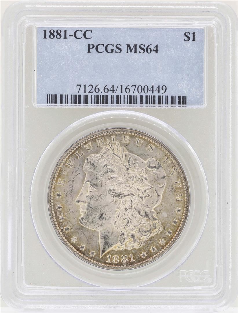 One 1881-CC $1 Morgan Silver Dollar Coin PCGS MS64. PCGS Graded.