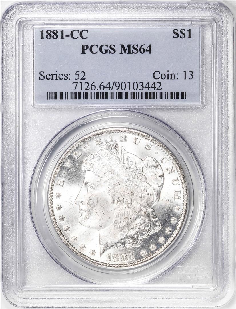 One 1881-CC $1 Morgan Silver Dollar Coin PCGS MS64. PCGS Graded.